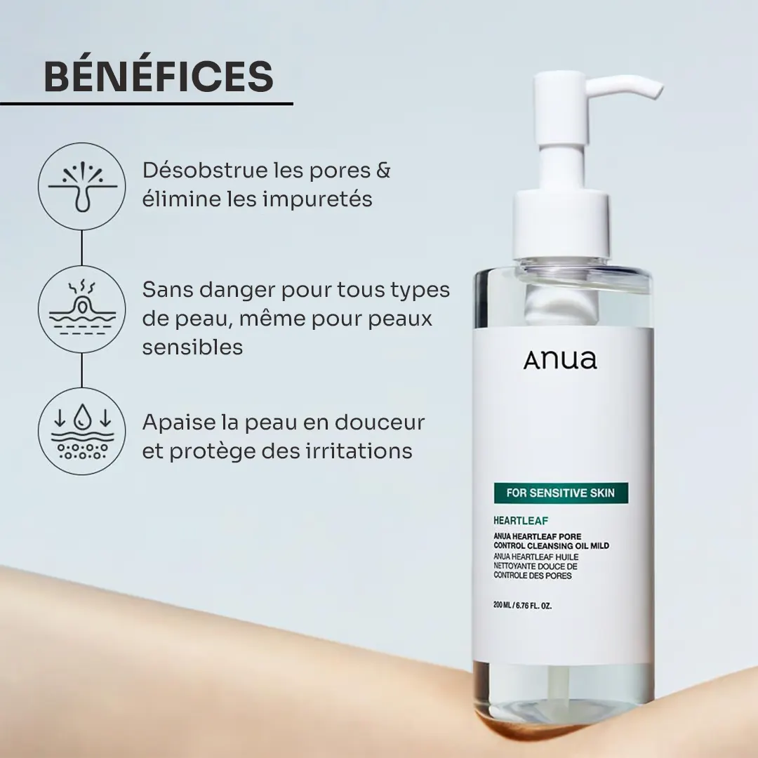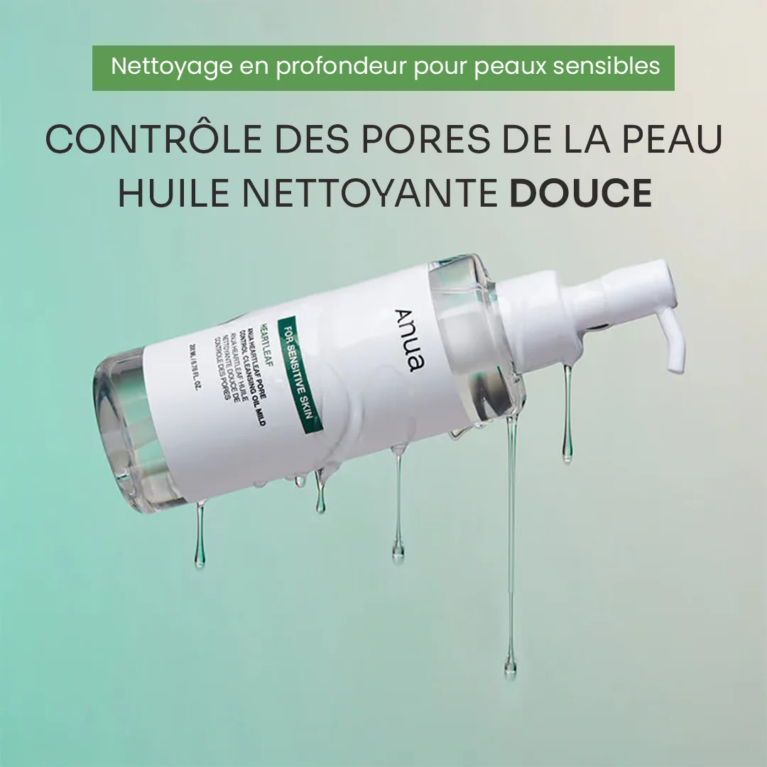 Anua huile nettoyante anti-pores ”Anua Heartleaf Pore Control” est un soin pensé pour purifier en douceur, préserver l’hydratation de la peau et cibler particulièrement les pores obstrués, les points noirs et les zones grasses.