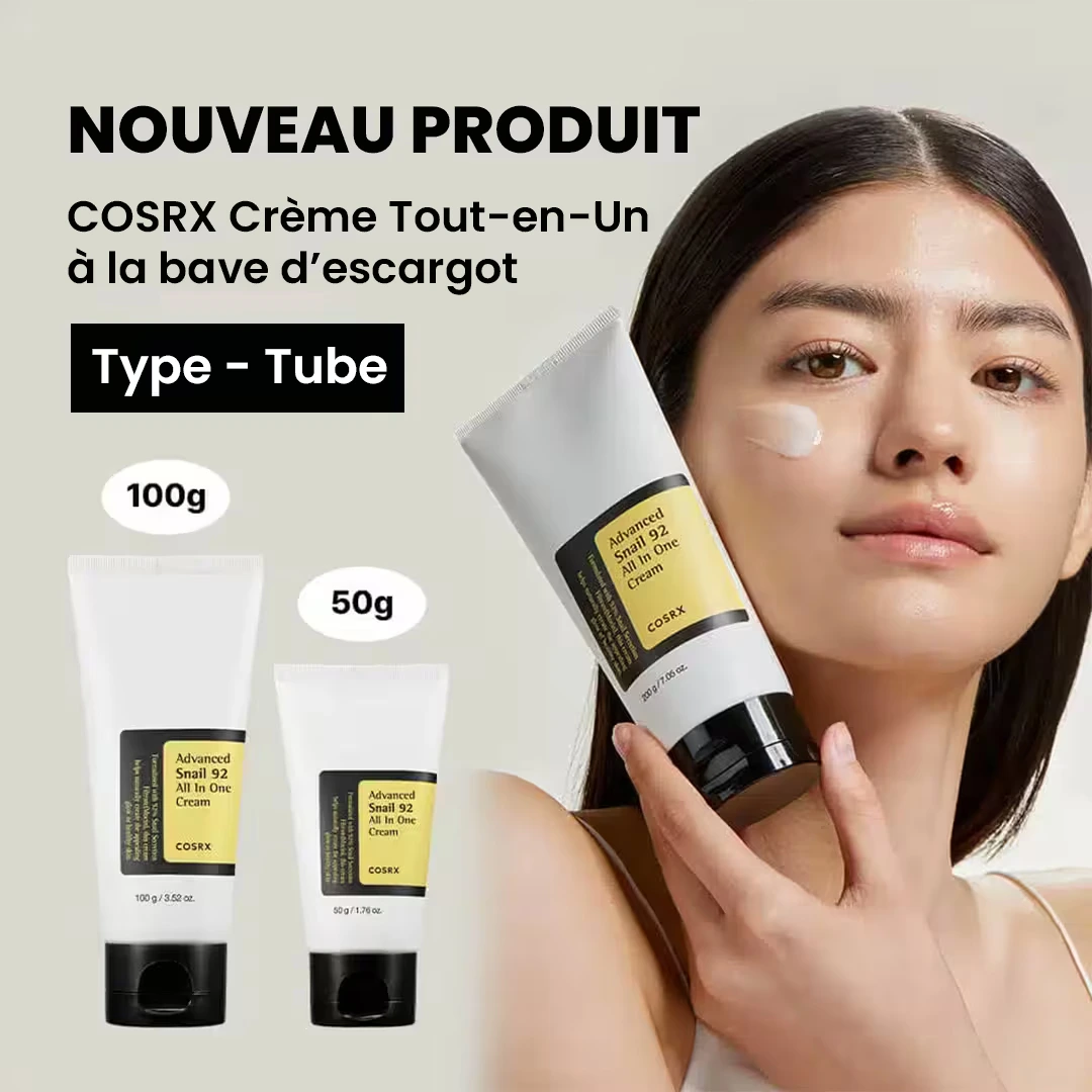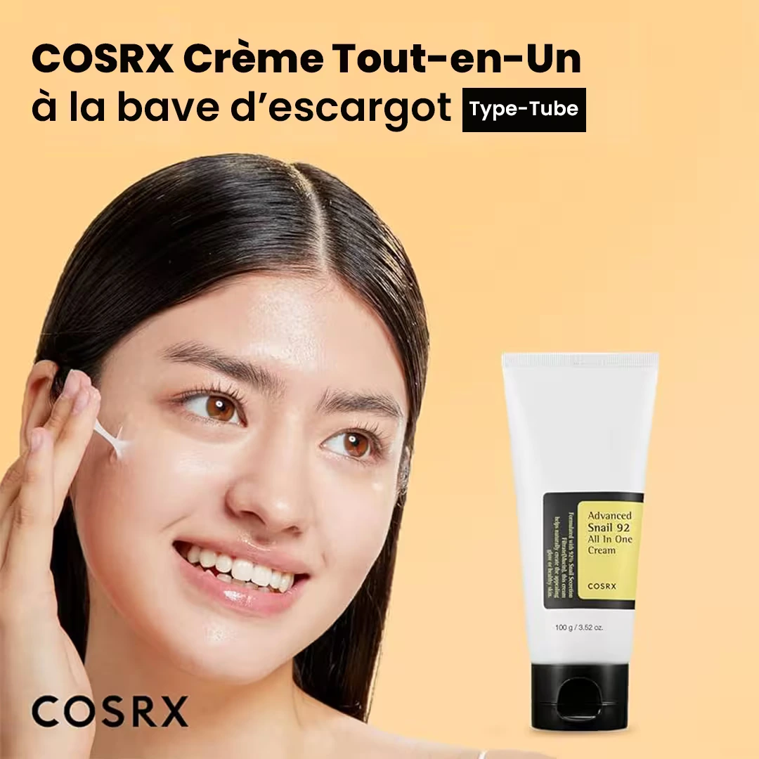 La COSRX Crème Tout-en-Un à la bave d’escargot (format tube) est un soin polyvalent qui répond aux besoins essentiels de la peau :