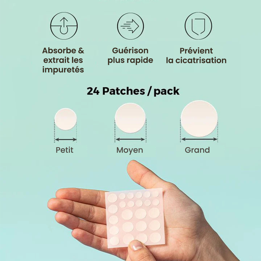 Présentés en sachet refermable, ils contiennent 24 patchs de trois tailles différentes — petits, moyens, grands — pour s’adapter à chaque type d’imperfection.